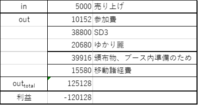 大赤字……。ちなみに、頒布予定のものが全て売れたとしても回収できず、完全にキャッシュフローのデザインを間違えた。最後に、次回の対策についてを書いた分を置いておく。